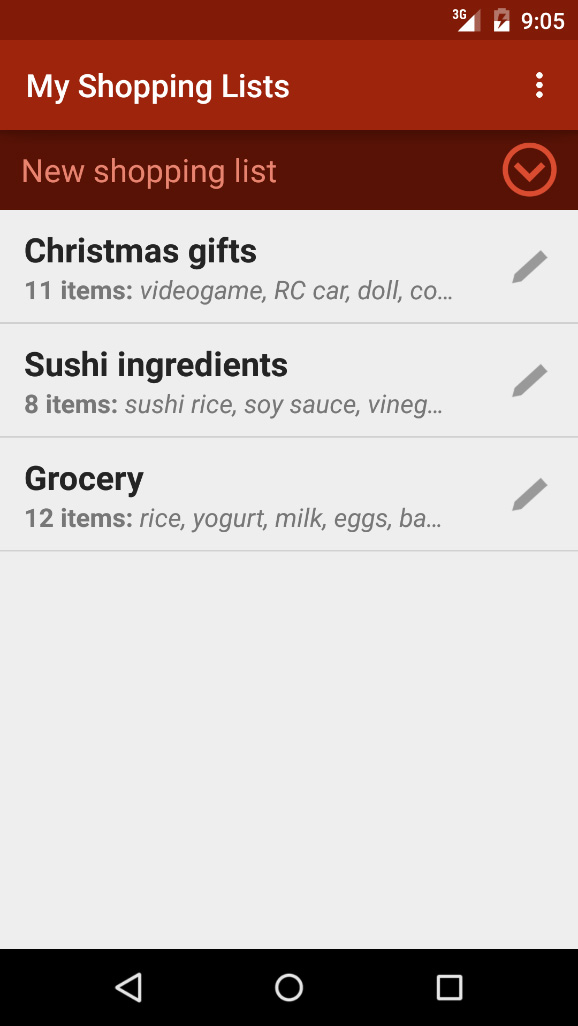 After releasing the first version of my shopping list app in 2012, I continued learning about Android development and UI/UX design, which resulted in this new version of the app. It improved the original design to modernise it while still keeping the same simplicity-first philosophy.