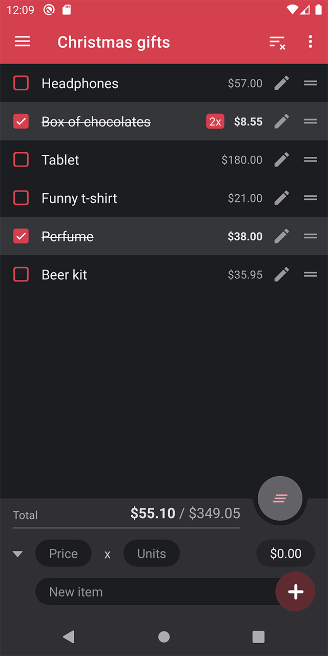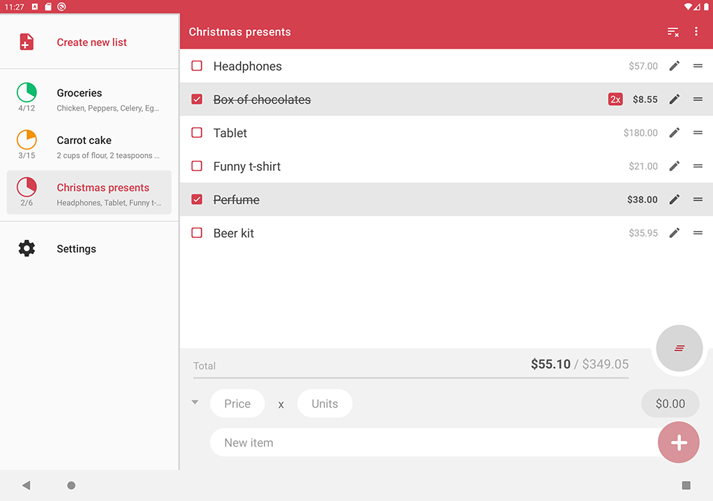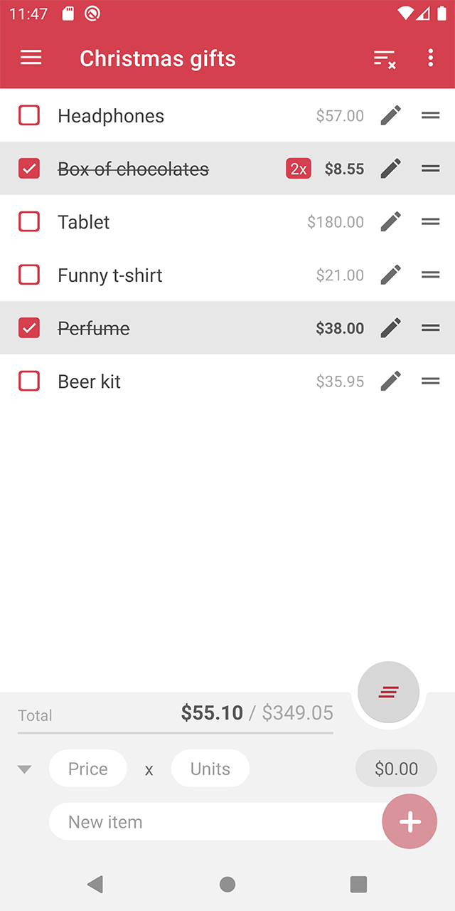 Building on the original 2012 version and the 2013 UI overhaul, this version adds new functionality (prices, units, list colours, etc.) while keeping the app simple for casual users. This is, you can still just open it and start adding items without anything getting in your way, but more advanced features are there in expandable menus in case you are the kind of user who wants to see them and use them.