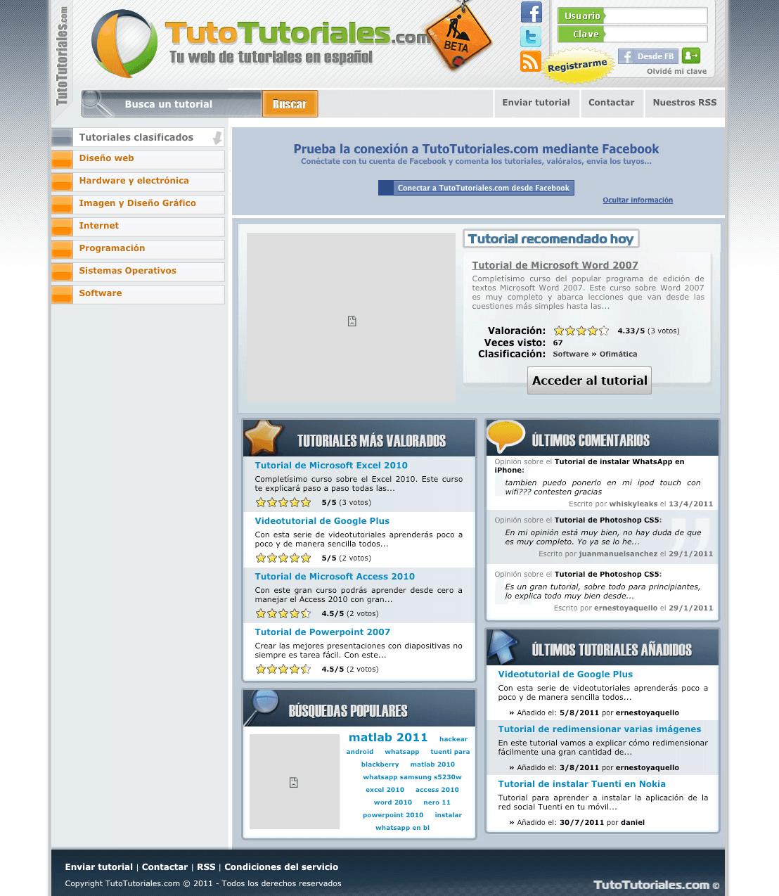 This was the first version of TutoTutoriales.com, a website I created in 2011 to offer tutorials about various topics in an attempt to recreate the success of Tutoriales-Gratis.com.